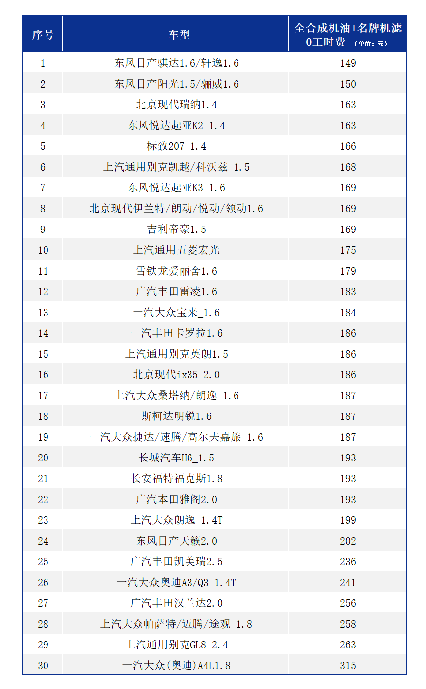 常見(jiàn)車(chē)型升級全合成油價格≤$®